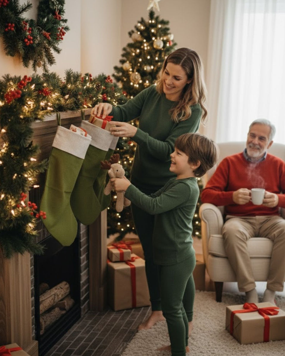 Dive into the heartwarming spirit of the season with our Linen Christmas Stockings. Crafted to evoke a cozy and casual atmosphere, each stocking features a convenient loop for hanging. Whether placed above the fireplace, on the door handle, or adorning the Christmas tree, our organic stockings bring a touch of rustic charm to your festive decor. The Linen Christmas stockings, with their charming cuffs, offer a cozy reminder of the love and care woven into the fabric of your home. Eco-friendly Christmas socks make for an eco-conscious addition under the tree, embodying the warmth and sustainability that define the true spirit of the season.
