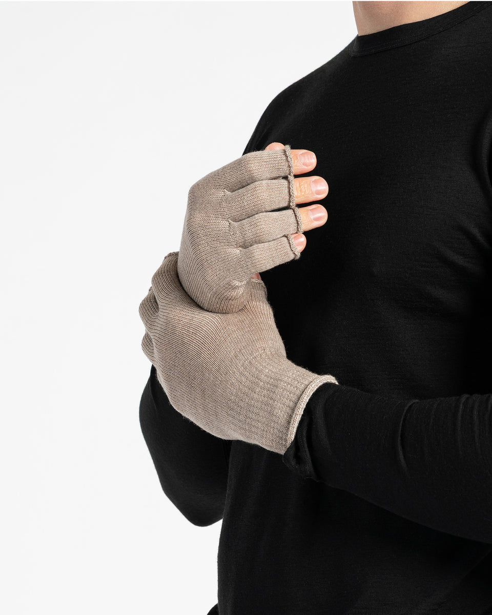 Gear up for colder days with our premium Merino wool liner set, including a beanie, neck gaiter, and fingerless gloves. Made from 100% ultra-soft Merino wool, this light knit set delivers superior warmth, breathability, and moisture control perfect for active days outdoors or layering up for everyday comfort. Knit beanie fits snugly under hoods or helmets, keeping your head warm without bulk. Liner neck warmer offers seamless protection against wind and cold, while staying breathable enough for all-day wear. The thermal hiking gloves provide essential warmth while leaving your fingertips free for tasks that require precision whether you're handling gear, taking photos, or using your phone.