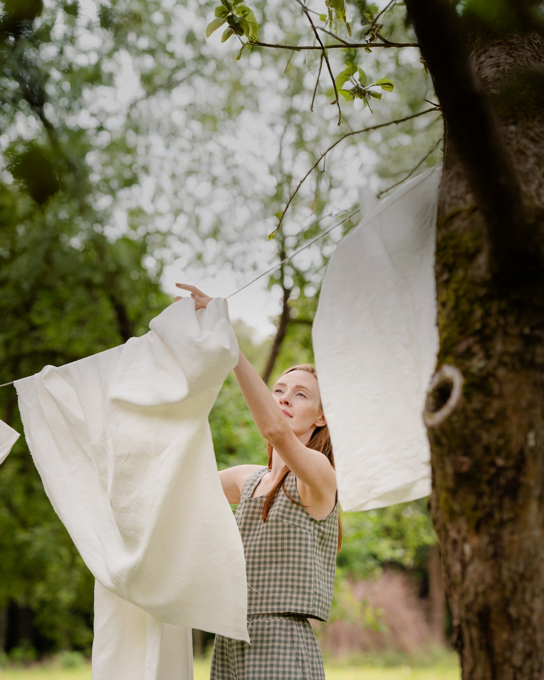 In our commitment to sustainability, we've reimagined the journey of our linen. By repurposing leftover fabric from our finest garments, we breathe new life into every thread, crafting beautiful essentials like linen scrunchies, bread bags, pocket organizers, baby bibs, burp cloths, and napkins.