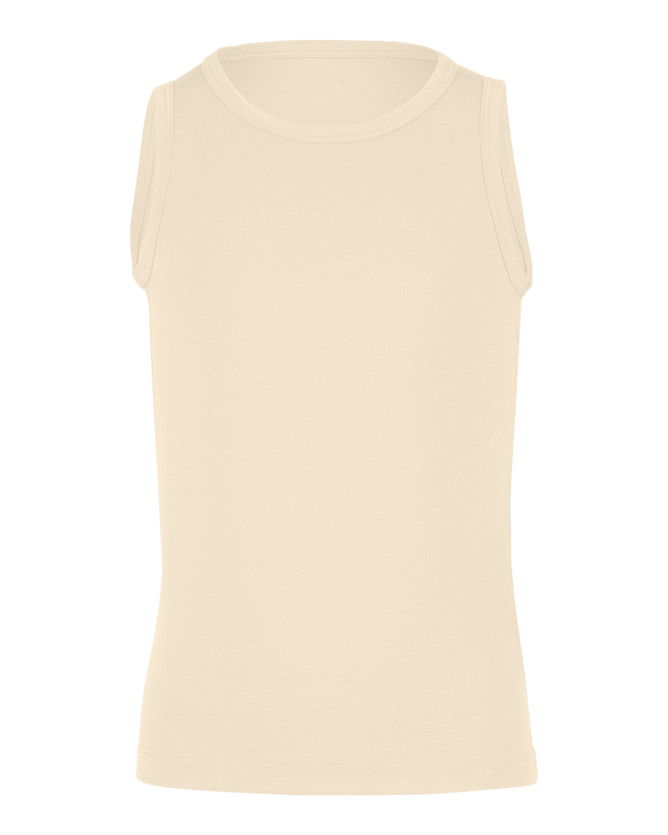 Natural color and natural beauty of your kid – this a combination by menique, portrayed in this sleeveless top for kids in natural color. Lightweight 160gsm, organic, soft yet durable, 100% Merino wool fabric with flatlock seams embraces the skin during any season, therefore this tank top can be a perfect base layer under other clothes. Simple yet indispensable this unisex sleeveless vest top has so many possible uses that can be matched with everything. No need to worry about ironing or washing – this plain sleeveless t-shirt has no specific care requirements, is wrinkle resistant and quickly drying. This is why it is easy to let your child discover the world with comfort.
